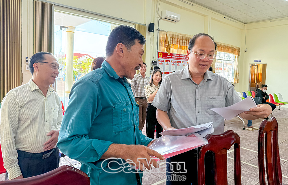 Đồng chí Nguyễn Hồ Hải, Bí thư Tỉnh uỷ thăm hỏi, trao đổi với công dân đến Trung tâm Phục vụ hành chính công xã Trí Phải giải quyết thủ tục hành chính.