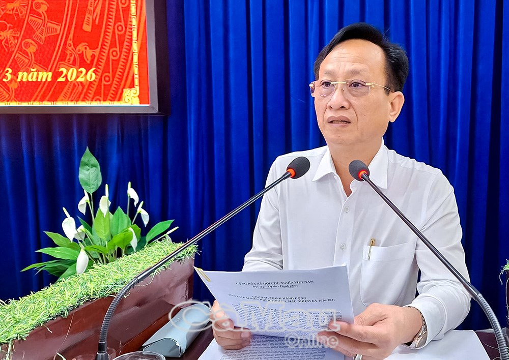 | Phó Bí thư Thường trực Tỉnh ủy Huỳnh Quốc Việt trình bày chương trình hành động |
