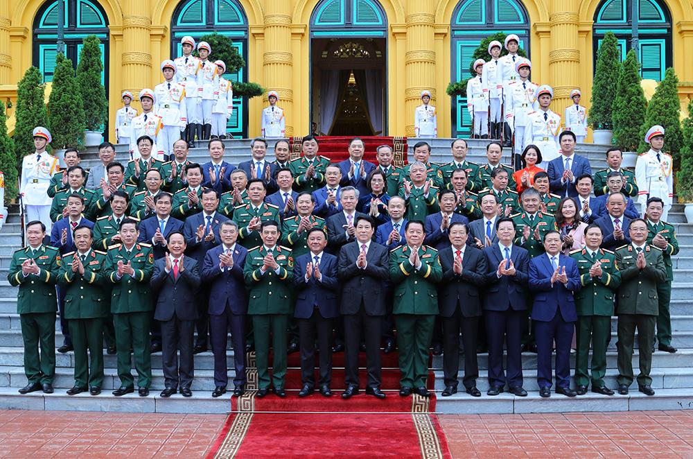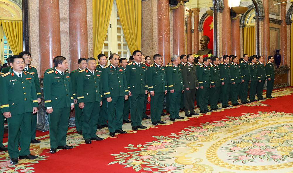 Chủ tịch nước Lương Cường khẳng định, đây là sự ghi nhận, đánh giá cao của Đảng, Nhà nước, Quân ủy Trung ương, Bộ Quốc phòng và Nhân dân đối với những cống hiến, đóng góp to lớn của các đồng chí trong sự nghiệp xây dựng và bảo vệ Tổ quốc; đây cũng là niềm vui, niềm vinh dự, tự hào của Quân ủy Trung ương, Bộ Quốc phòng, của toàn thể cán bộ, chiến sĩ QĐND Việt Nam, của cá nhân, gia đình và quê hương các đồng chí. Chủ tịch nước Lương Cường nêu rõ, các đồng chí được bổ nhiệm, thăng quân hàm là những cán bộ ưu tú của Đảng, Nhà nước và Quân đội; đều được đào tạo cơ bản, có hệ thống, trưởng thành từ cơ sở, được rèn luyện, thử thách qua nhiều cương vị, lĩnh vực, môi trường công tác khác nhau. Dù trong bất cứ điều kiện, hoàn cảnh nào, các đồng chí cũng luôn thể hiện là những cán bộ có bản lĩnh chính trị vững vàng, phẩm chất đạo đức cách mạng trong sáng, gương mẫu, tận tụy, trách nhiệm; luôn hoàn thành tốt và xuất sắc mọi nhiệm vụ được giao. Trong quá trình công tác, các đồng chí đã lập nhiều thành tích, chiến công xuất sắc, được Đảng, Nhà nước, Quân ủy Trung ương, Bộ Quốc phòng và bạn bè quốc tế tặng thưởng nhiều phần thưởng cao quý.