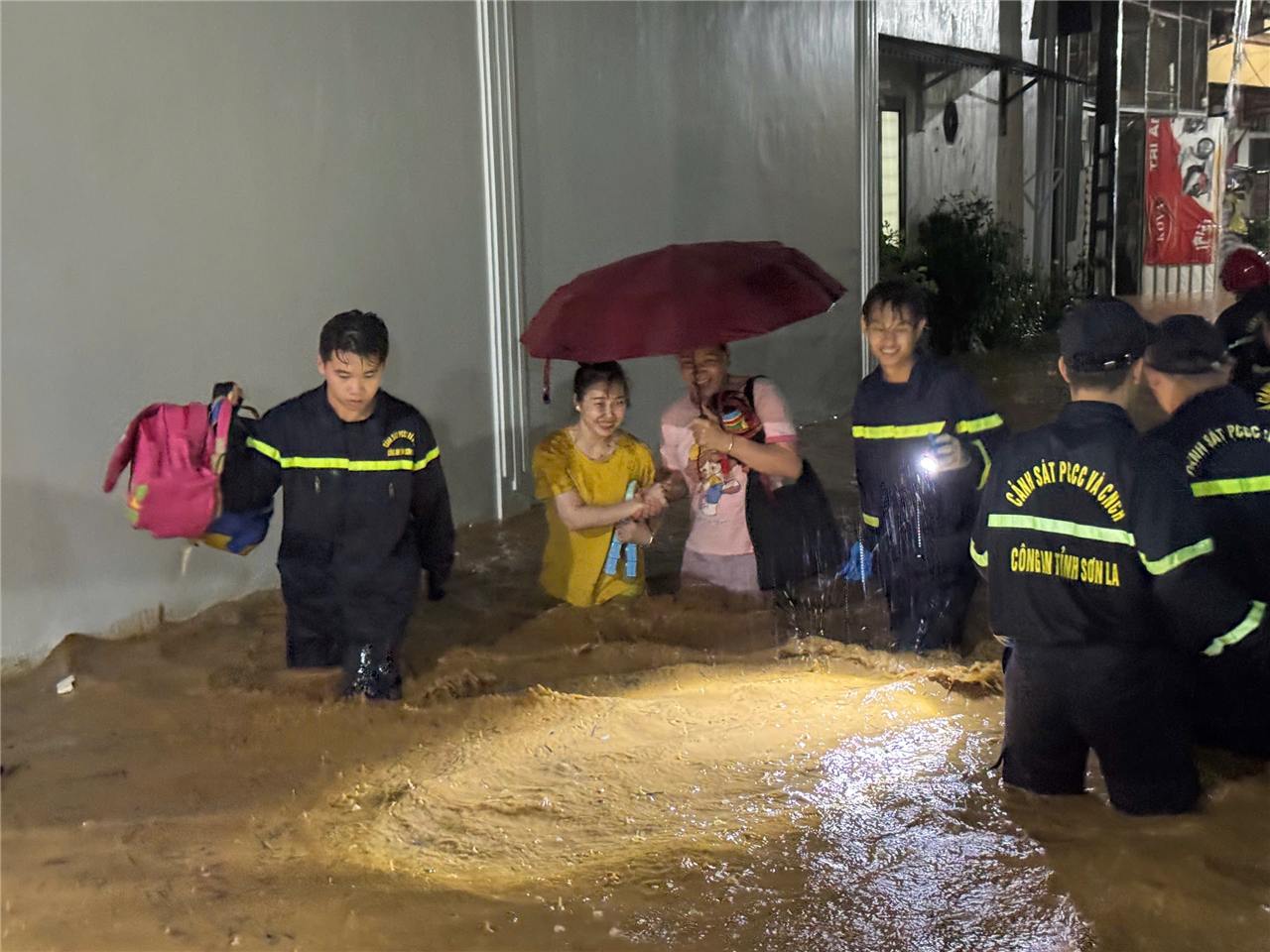 Ngay trong đêm 26/7, Công an tỉnh Sơn La đã huy động lực lượng kịp thời hỗ trợ người dân các xã ứng phó với mưa lũ, tìm kiếm người mất tích (Đến nay đã tìm thấy 4 người), tổ chức sơ tán, di dời tài sản đến nơi an toàn. Đến đêm 27/7, Ban Giám đốc Công an tỉnh Sơn La tiếp tục huy động gần 400 cán bộ, chiến sĩ, hơn 30 phương tiện, thuộc các đơn vị Phòng Cảnh sát phòng cháy, chữa cháy và cứu hộ, cứu nạn, Phòng Cảnh sát cơ động, Phòng Cảnh sát giao thông, các Tổ công tác địa bàn thuộc các phòng Công an tỉnh, Công an các xã Sông Mã, Chiềng Khoong, Mường Lầm, Nậm Ty, Chiềng Sơ, Huổi Một, Sốp Cộp, Mường Khiêng, Bó Sinh; hơn 600 đồng chí lực lượng tham gia bảo vệ an ninh, trật tự ở cơ sở; đồng thời đề nghị Bộ Tư lệnh Cảnh sát cơ động huy động 40 cán bộ, chiến sĩ thuộc Trung đoàn Cảnh sát cơ động Tây Bắc đang đóng quân tại xã Chiềng Mung, tỉnh Sơn La phối hợp với các lực lượng của Công an tỉnh Sơn La tham gia phòng, chống, khắc phục hậu quả thiên tai tại các xã, tiếp tục tìm kiếm người mất tích; đến từng bản, tiểu khu, từng hộ gia đình bị ảnh hưởng, thiệt hại do mưa lũ để dọn dẹp bùn đất, khơi thông cống rãnh, bảo vệ tài sản của người dân; dọn dẹp đất đá tại các điểm sạt lở trên đường, phân luồng giao thông tại các điểm ngập úng nghiêm trọng, đảm bảo an toàn giao thông cho người, phương tiện qua lại; thăm hỏi, động viên các gia đình có người chết và mất tích; hỗ trợ lương thực thực phẩm cho người dân ở các khu vực bị chia cắt.