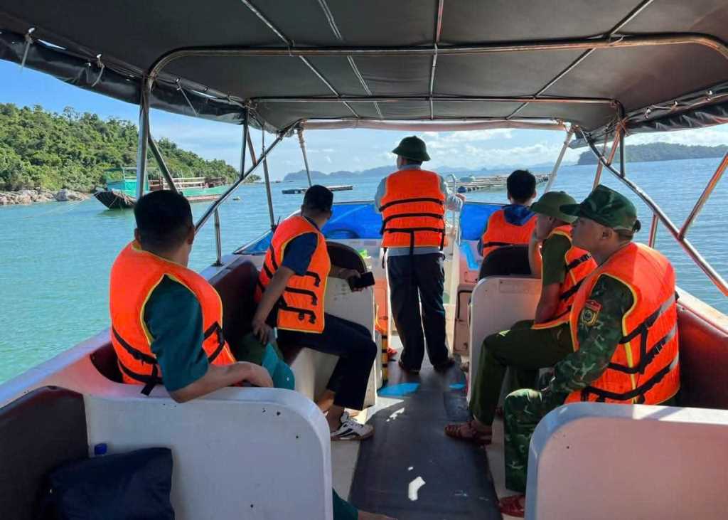 Đoàn công tác của xã Cái Chiên kiểm tra tình trạng nuôi trồng thuỷ sản tại khu vực Cửa Tiểu.