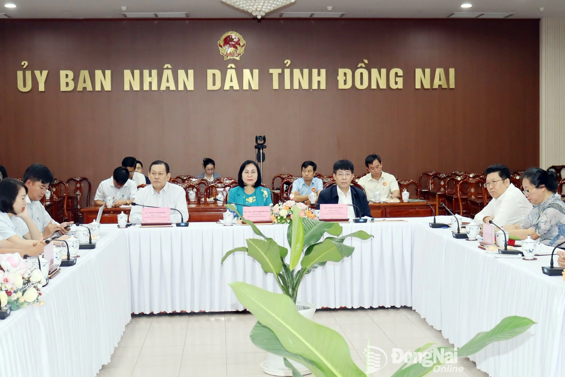 Tỉnh ủy viên, Phó Chủ tịch UBND tỉnh Đồng Nai Nguyễn Thị Hoàng phát biểu tại hội nghị. Ảnh: Hoàng Lộc