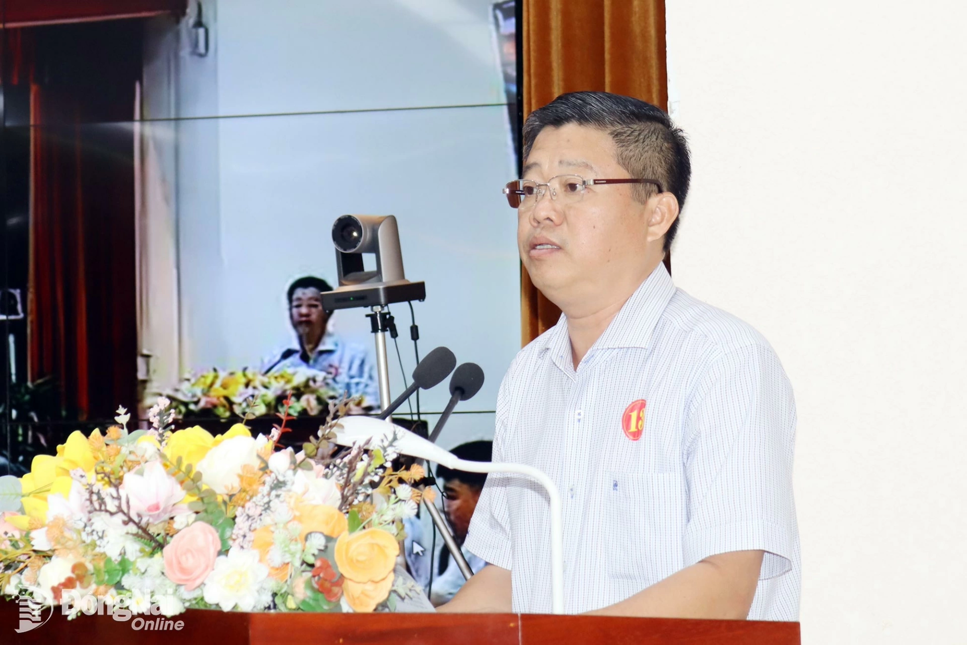 Đại diện UBND phường Phước Long, tỉnh Đồng Nai trình bày tham luận tại hội nghị. Ảnh: Hoàng Lộc