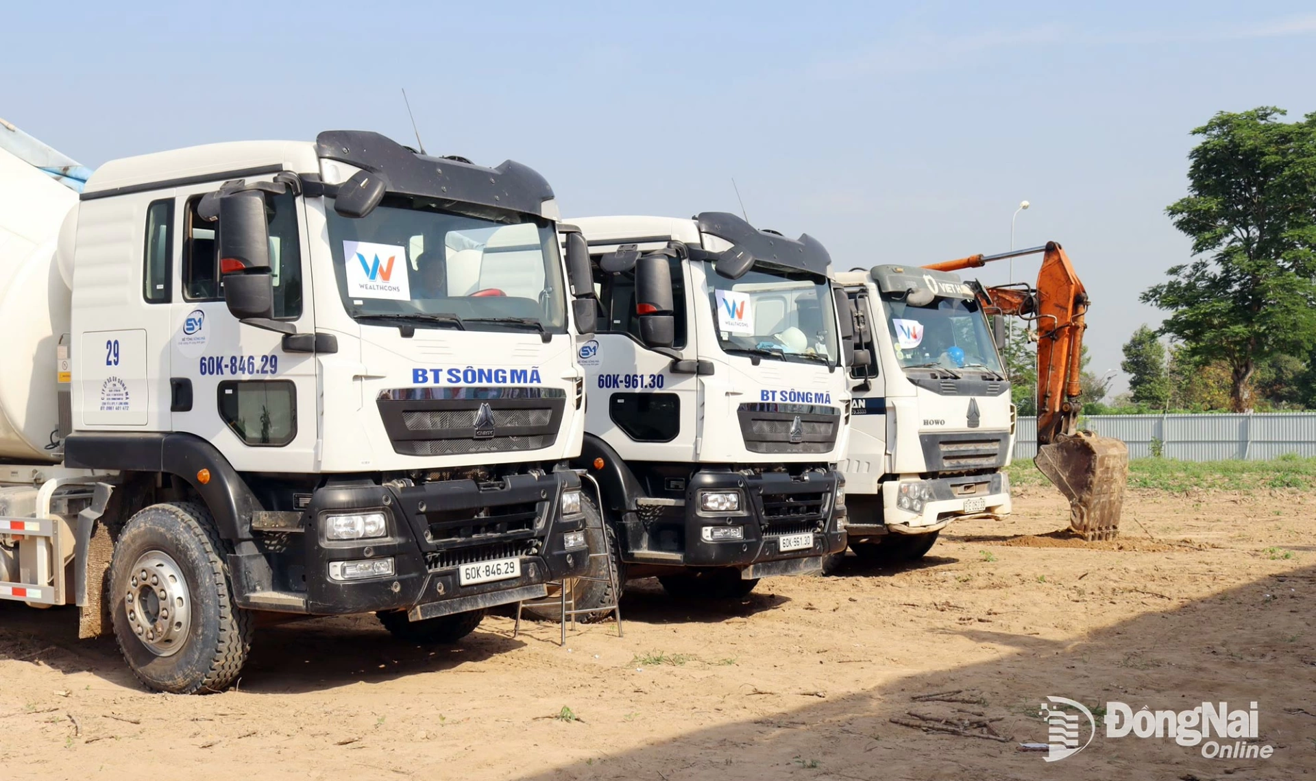 Các phương tiện, máy móc sẵn sàng phục vụ thi công dự án. Ảnh: Hoàng Lộc