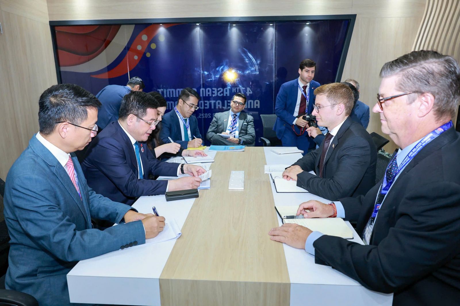 Bên lề Hội nghị Cấp cao ASEAN - Hoa Kỳ lần thứ 13, Bộ trưởng Nguyễn Hồng Diên đã có cuộc gặp gỡ với Trưởng Đại diện Thương mại Hoa Kỳ (USTR) Jamieson Greer, trao đổi thống nhất đẩy nhanh tiến độ để đi tới kết thúc đàm phán, hướng đến hoàn thành Hiệp định thương mại đối ứng, công bằng và cân bằng.