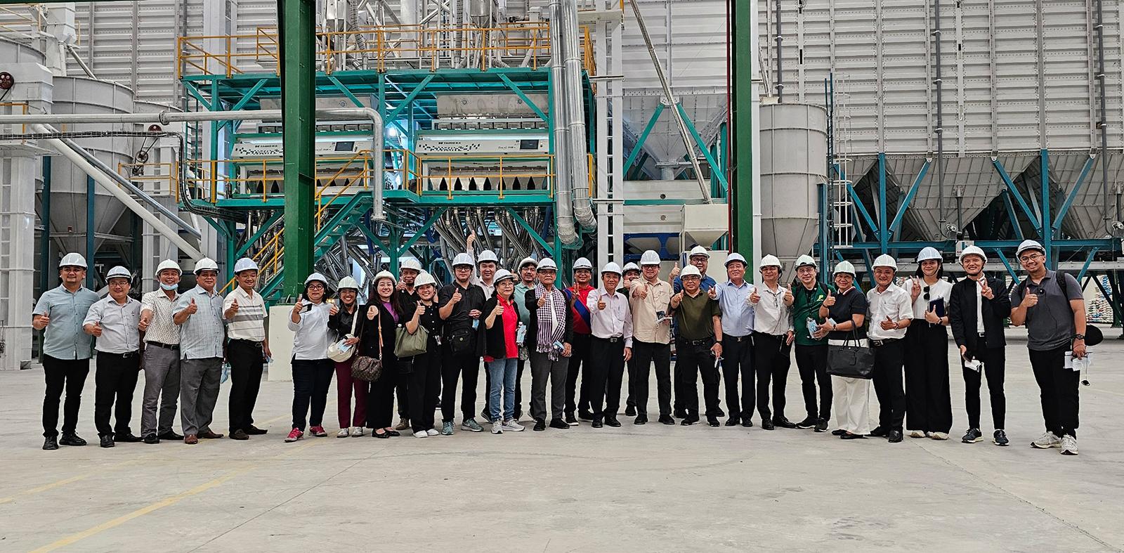 Đoàn công tác của Bộ Nông nghiệp Philippines và các doanh nghiệp kinh doanh lương thực của Philippines đến thăm, tìm hiểu cơ hội hợp tác kinh doanh tại Nhà máy gạo Hạnh Phúc của Tập đoàn Tân Long ở xã Vĩnh Gia. Ảnh: NGÔ HOÀNG