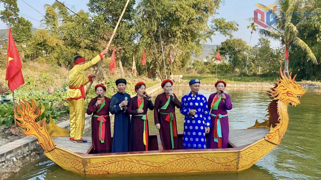 Hát dân ca trên ao làng cạnh đình.