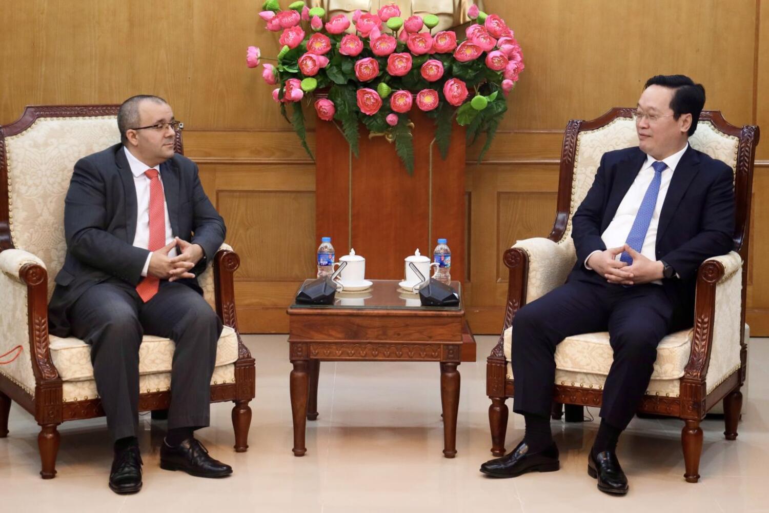 Đồng chí Nguyễn Đức Trung trao đổi với Phó Đại sứ Cuba