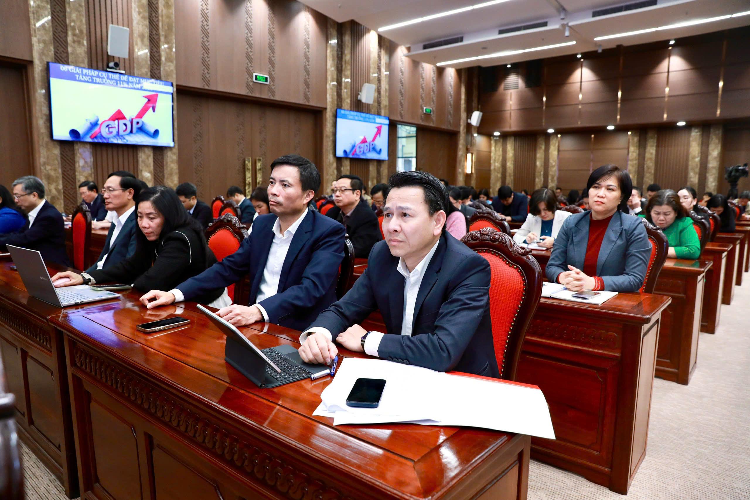 Chủ trì hội nghị có các đồng chí: Ủy viên Bộ Chính trị, Bí thư Thành ủy Nguyễn Duy Ngọc; Ủy viên Trung ương Đảng, Phó Bí thư Thành ủy, Chủ tịch UBND thành phố Vũ Đại Thắng, Bí thư Đảng ủy UBND thành phố; Phó Bí thư Thường trực Thành ủy Nguyễn Văn Phong, Bí thư Đảng ủy các cơ quan Đảng thành phố; Phó Bí thư Thành ủy, Chủ tịch HĐND thành phố Phùng Thị Hồng Hà, Bí thư Đảng ủy HĐND thành phố; Phó Bí thư Thành ủy Nguyễn Trọng Đông; Ủy viên Ban Thường vụ Thành ủy, Bí thư Đảng ủy Mặt trận Tổ quốc Việt Nam thành phố, Chủ tịch Ủy ban Mặt trận Tổ quốc Việt Nam thành phố Bùi Huyền Mai.