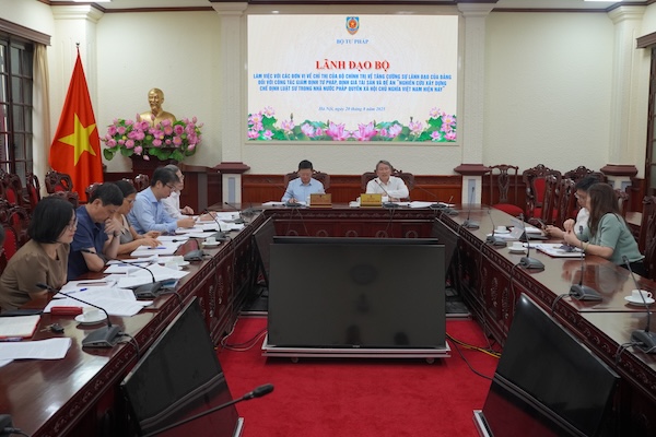 Chiều 20/8, Bộ trưởng Bộ Tư pháp Nguyễn Hải Ninh và Thứ trưởng Mai Lương Khôi đã làm việc với các đơn vị về Chỉ thị của Bộ Chính trị về tăng cường sự lãnh đạo của Đảng đối với công tác giám định tư pháp, định giá tài sản và Đề án “Nghiên cứu xây dựng chế định Luật sư công trong Nhà nước pháp quyền xã hội chủ nghĩa Việt Nam hiện đại”.