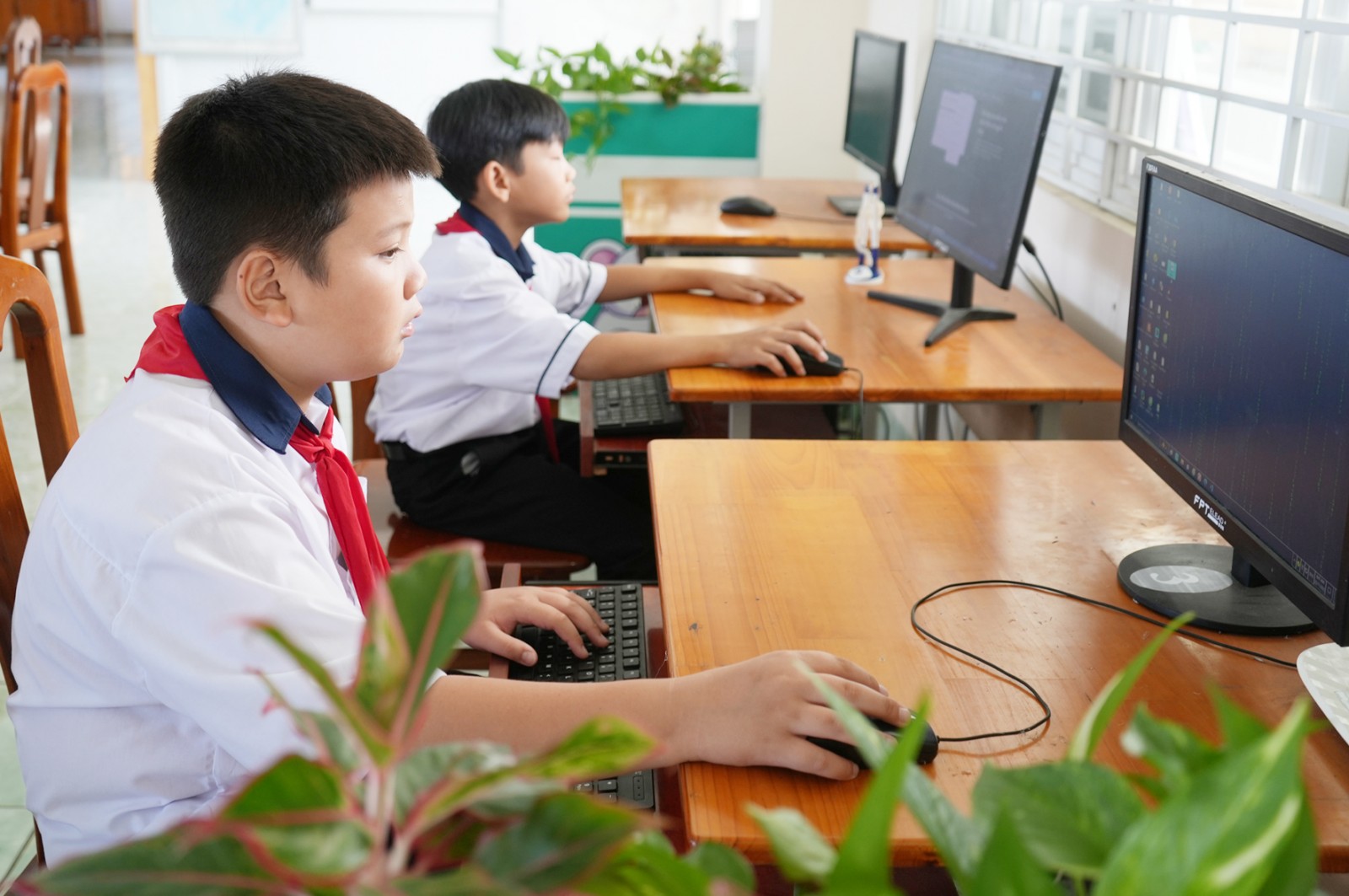 Việc ứng dụng công nghệ mở ra phương thức học tập mới, linh hoạt và hiện đại hơn. Nếu thư viện xanh tạo môi trường gần gũi, thư giãn thì thư viện điện tử mang đến nguồn học liệu đa dạng, tiện lợi, hỗ trợ học sinh tra cứu nhanh, dễ dàng tiếp cận tri thức ngoài sách giấy truyền thống. Việc kết hợp không gian xanh và công nghệ giúp việc đọc sách trở nên linh hoạt, hấp dẫn hơn, phù hợp với xu thế chuyển đổi số trong giáo dục. Em Nguyễn Phương Thảo - học sinh lớp 9A1 chia sẻ: “Từ khi có thư viện xanh, em và các bạn có thêm nhiều lựa chọn sách khoa học, kỹ năng sống và sách phục vụ học tập. Chúng em cũng được hướng dẫn tra cứu tài liệu ở thư viện điện tử giúp việc tìm thông tin nhanh chóng và thuận tiện hơn”.