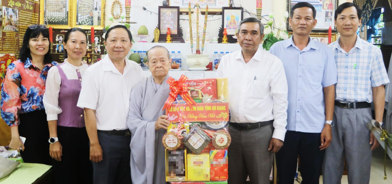 Sở Dân tộc và Tôn giáo tỉnh An Giang tặng quà Ni trưởng Thích nữ Diệu Thông (Ni cô Huyền Trang), chùa Thất Bửu, xã An Châu.