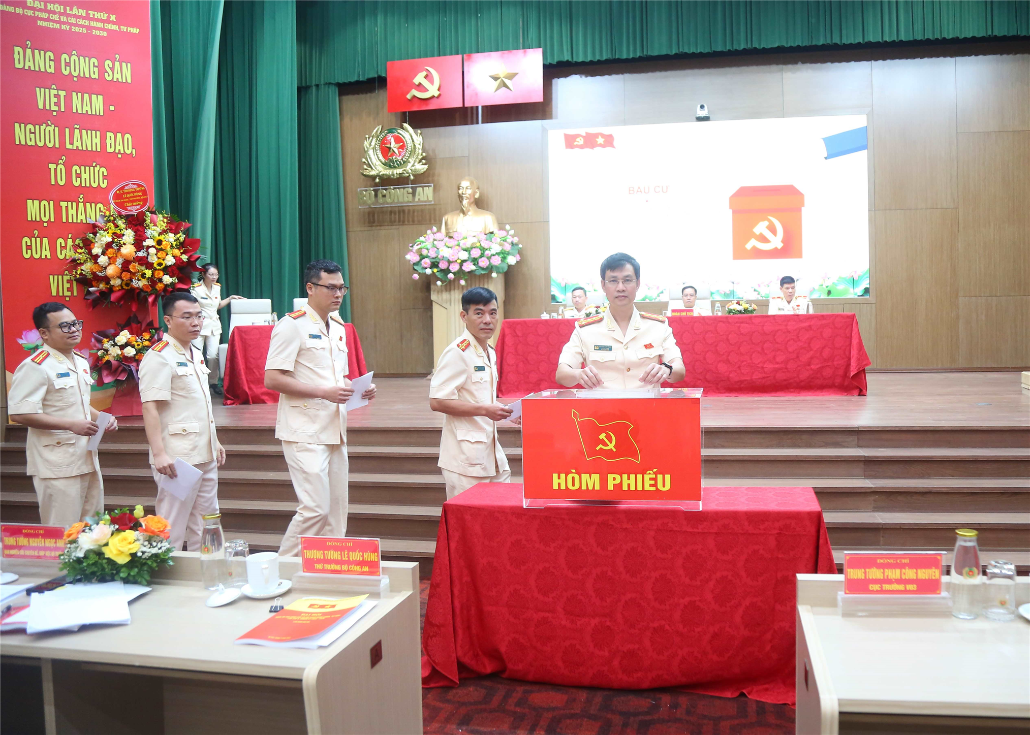 * Tại Đại hội, các đại biểu đã tiến hành bầu Ban Chấp hành Đảng bộ Cục Pháp chế và cải cách hành chính, tư pháp nhiệm kỳ 2025 – 2030 gồm 11 đồng chí; bầu Đoàn đại biểu dự Đại hội đại biểu Đảng bộ Công an Trung ương lần thứ VIII nhiệm kỳ 2025 - 2030.