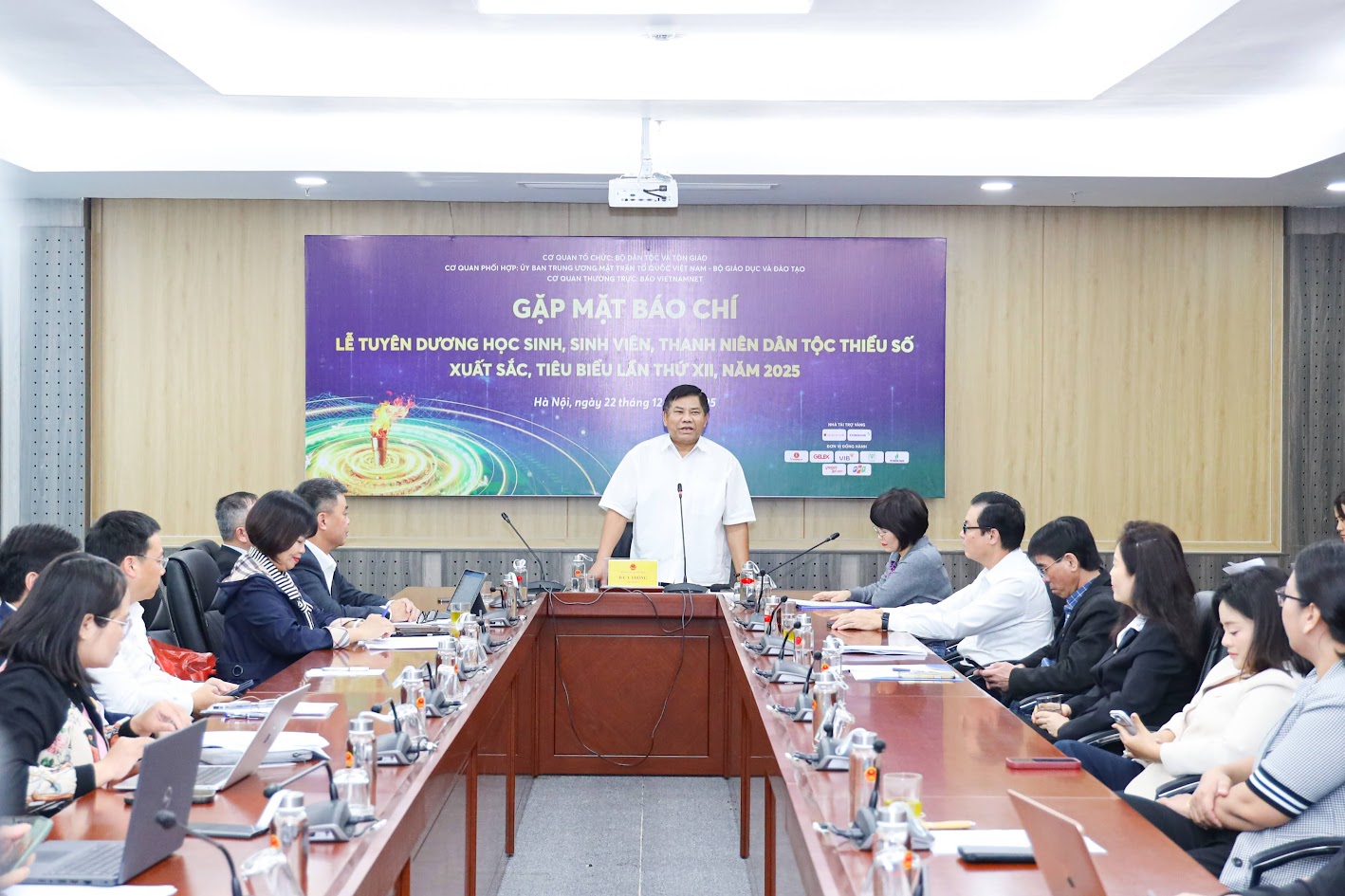Ngày 22/12, Bộ Dân tộc và Tôn giáo tổ chức gặp mặt báo chí thông tin về lễ tuyên dương học sinh, sinh viên, thanh niên dân tộc thiểu số (DTTS) xuất sắc, tiêu biểu, lần thứ XII, năm 2025.
