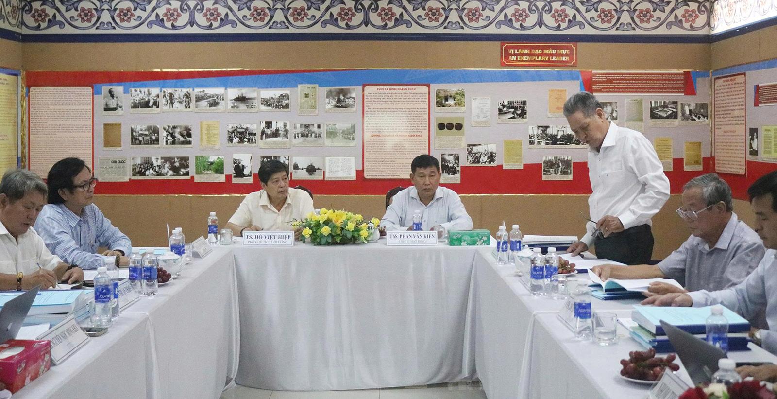 Quang cảnh nghiệm thu đề tài “Nghiên cứu phát huy giá trị bộ sưu tập hiện vật văn hóa Óc Eo tại An Giang (trong đó có nghệ thuật Phật giáo và Hindu giáo)”.