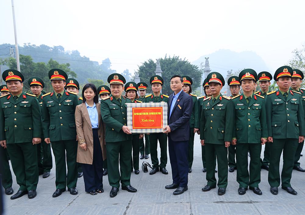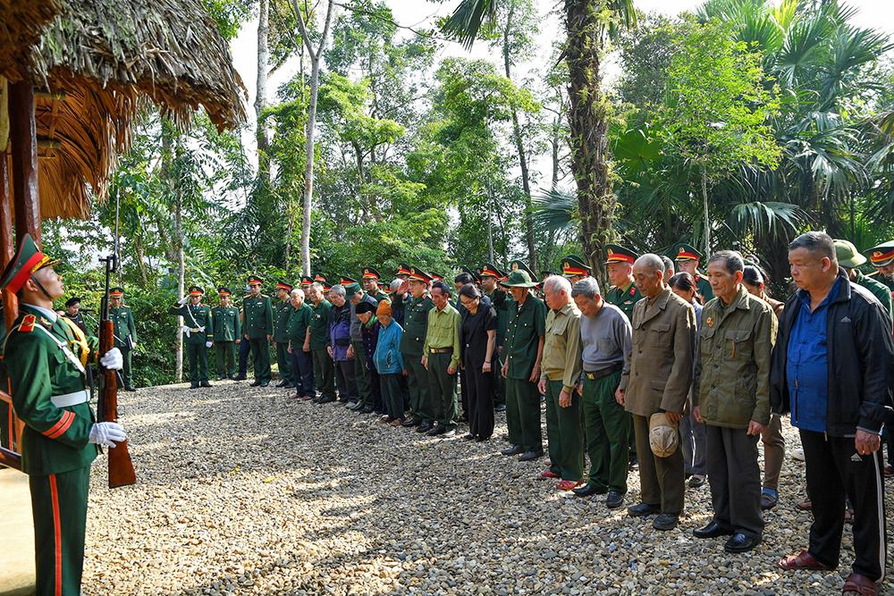 Đoàn công tác cùng đại biểu gia đình chính sách, gia đình có công dâng hương, dâng hoa tưởng niệm Đại tướng Võ Nguyên Giáp tại Di tích Văn phòng Bộ Tổng Tư lệnh, nơi ở và làm việc của Đại tướng Võ Nguyên Giáp (1949 - 1954).