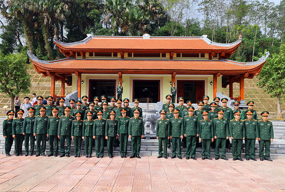 Thiếu tướng Lê Văn Thuận và đoàn công tác chụp ảnh lưu niệm tại Đền thờ Đại tướng Võ Nguyên Giáp.