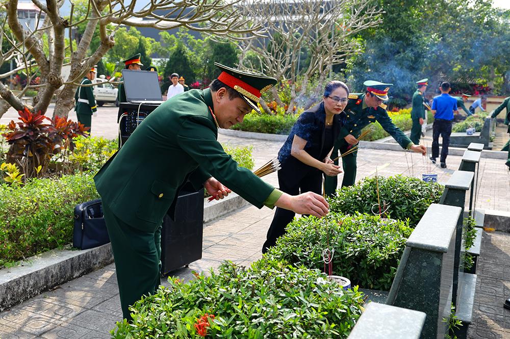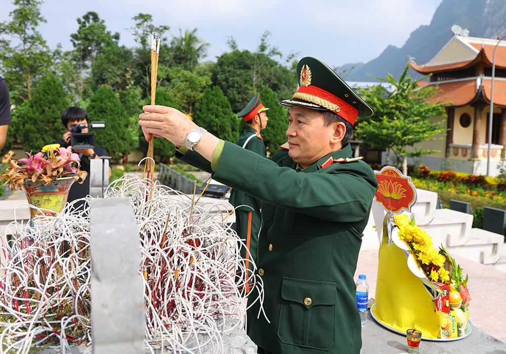 Thiếu tướng Lê Văn Thuận và đoàn công tác viếng Nghĩa trang liệt sĩ Định Hóa.