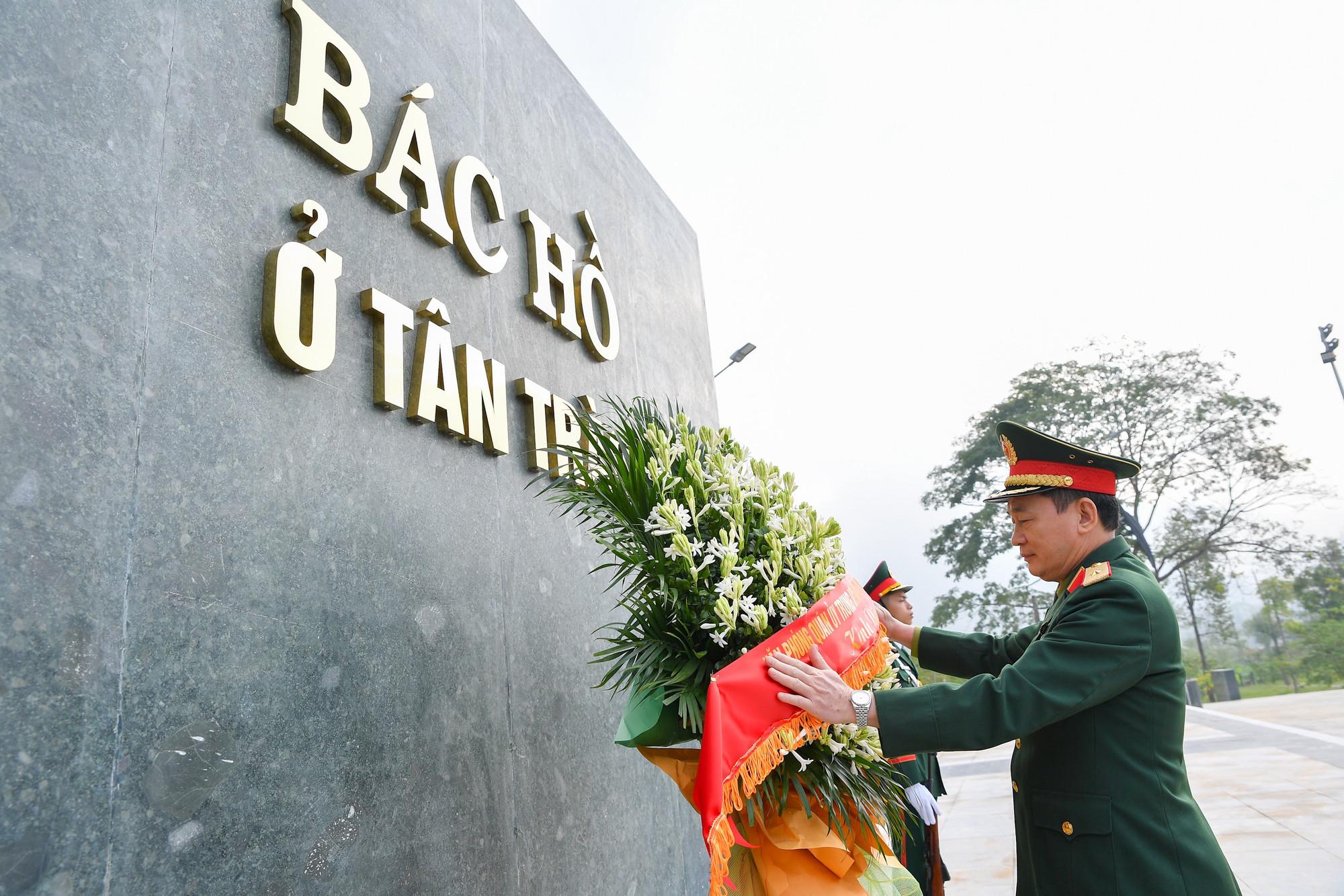 Đoàn công tác Văn phòng Quân ủy Trung ương - Văn phòng Bộ Quốc phòng dâng hoa tại Tượng đài “Bác Hồ ở Tân Trào”.