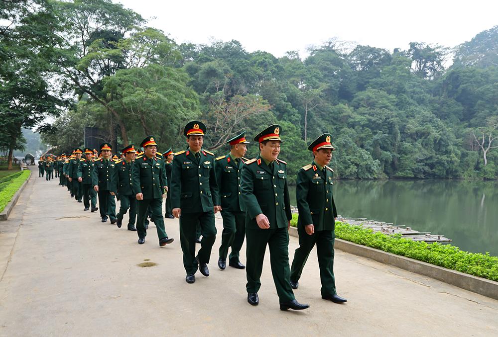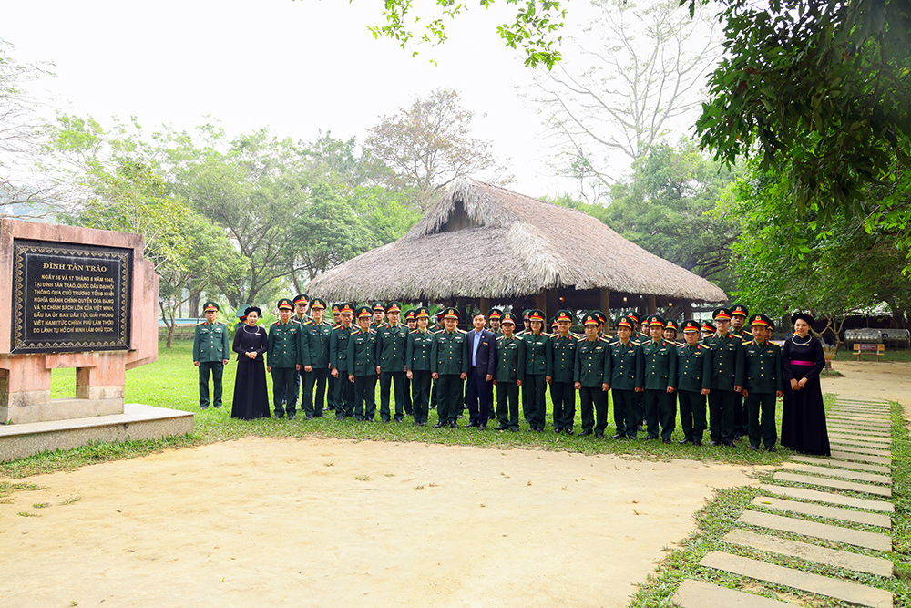 Thiếu tướng Lê Văn Thuận và Đoàn công tác Văn phòng Quân ủy Trung ương - Văn phòng Bộ Quốc phòng thăm Khu di tích lịch sử Tân Trào.