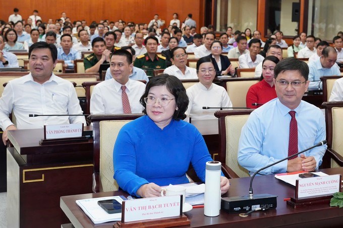 Đồng chí Văn Thị Bạch Tuyết cùng các đại biểu dự hội nghị. (Ảnh: SGGP)Ngày 26/12, Ban Tuyên giáo và Dân vận Thành ủy TPHCM tổ chức tổng kết công tác Tuyên giáo và Dân vận năm 2025, triển khai nhiệm vụ năm 2026 và trao tặng khen thưởng cấp nhà nước.