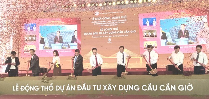 Nghi thức động thổ dự án xây dựng cầu Cần Giờ. (Ảnh: SGGP)Ngày 15/1, tại xã Nhà Bè, UBND TPHCM đã tổ chức lễ động thổ, xây dựng cầu Cần Giờ. Tham dự chương trình có các đồng chí: Đặng Minh Thông, Ủy viên Ban Thường vụ Thành ủy, Phó Bí thư Thành ủy TPHCM; Nguyễn Văn Thọ, Ủy viên Ban Thường vụ Thành ủy, Phó Chủ tịch HĐND TPHCM; Nguyễn Công Vinh, Thành ủy viên, Phó Chủ tịch UBND TPHCM cùng đại diện các sở, ban ngành...
