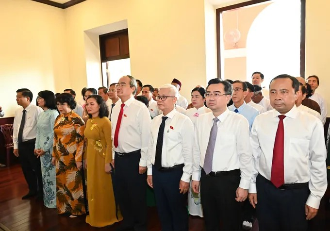 Tại Bảo tàng Hồ Chí Minh - Chi nhánh TPHCM, Đoàn đại biểu dành phút mặc niệm, thành kính dâng hoa, dâng hương lên anh linh Chủ tịch Hồ Chí Minh, anh hùng giải phóng dân tộc, lãnh tụ thiên tài của Đảng và nhân dân, nhà văn hóa kiệt xuất của đất nước.