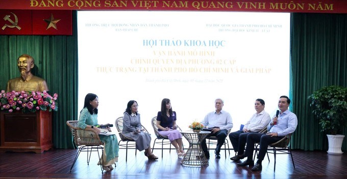 Các đại biểu thảo luận tại hội thảoSáng 5/12, HĐND TPHCM phối hợp ĐHQG TPHCM tổ chức Hội thảo khoa học “Vận hành mô hình chính quyền địa phương 2 cấp - thực trạng tại TPHCM và giải pháp”.