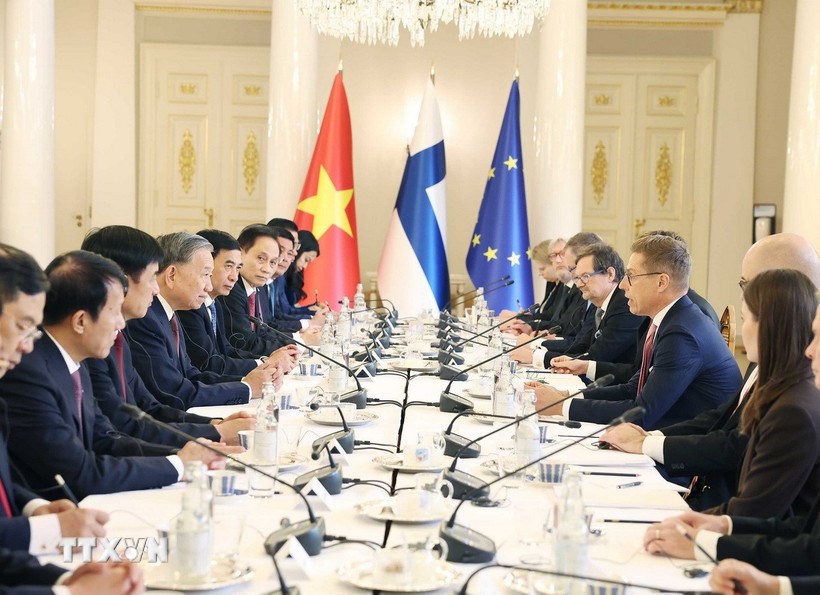 Tổng Bí thư Tô Lâm và Tổng thống Cộng hòa Phần Lan Alexander Stubb hội đàm. (Ảnh: TTXVN)Chuyến thăm chính thức của Tổng Bí thư Tô Lâm và Phu nhân Ngô Phương Ly cùng Đoàn đại biểu cấp cao Việt Nam tới Cộng hòa Phần Lan từ ngày 20-22/10 đã thành công tốt đẹp với những dấu ấn nổi bật.