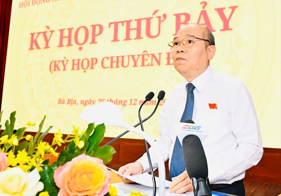 Phó Chủ tịch UBND TPHCM Trần Văn Bảy trình bày các tờ trình tại kỳ họp. Ảnh: SGGPCụ thể, quyết định sử dụng ngân sách địa phương để triển khai dự án đầu tư công độc lập nhằm thực hiện công tác bồi thường, hỗ trợ, tái định cư đối với các dự án đầu tư theo đồ án thiết kế đô thị riêng, quy hoạch đô thị vùng phụ cận các nhà ga thuộc các tuyến đường sắt được cấp có thẩm quyền phê duyệt, vùng phụ cận các nút giao thông dọc tuyến đường Vành đai 3 thuộc địa phận TPHCM để thu hồi đất, chỉnh trang, phát triển đô thị, thực hiện tái định cư, tạo quỹ đất.