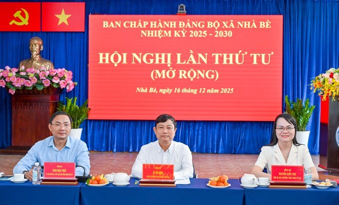 Phó Bí thư Thành ủy, Chủ tịch HĐND TPHCM Võ Văn Minh (giữa) dự Hội nghị lần thứ 4 Ban Chấp hành Đảng bộ xã Nhà Bè khóa I, nhiệm kỳ 2025-2030 (mở rộng)Sáng 16/12, Đảng ủy xã Nhà Bè tổ chức hội nghị lần thứ 4 Ban Chấp hành Đảng bộ xã khóa I, nhiệm kỳ 2025-2030 (mở rộng).