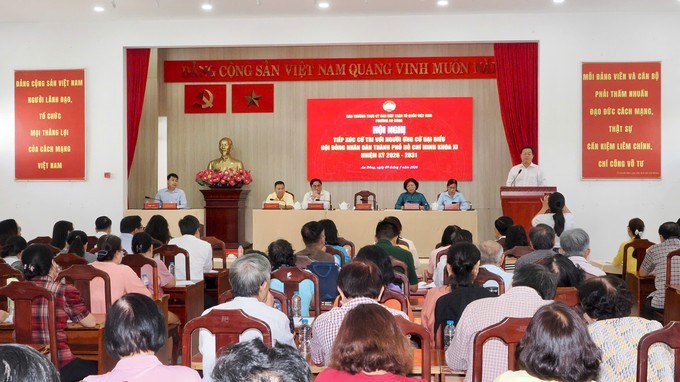 Lãnh đạo thành phố, lãnh đạo phường An Đông và cử tri dự hội nghị. (Ảnh: SGGP)Bên cạnh kỳ vọng đặt ra cho những người ứng cử, nhiều cử tri có ý kiến về các vấn đề dân sinh gắn với đặc thù địa bàn. Cử tri Võ Thị Phượng kiến nghị thành phố quan tâm sửa chữa, cải tạo hoặc xây dựng mới các chung cư cũ. Đồng thời cử tri mong muốn, nếu trúng cử, các đại biểu cần quan tâm nâng cao đời sống tinh thần cho phụ nữ, nhất là hỗ trợ phụ nữ tiếp cận ứng dụng công nghệ thông tin.