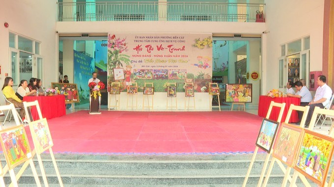 Quang cảnh hội thiNgày 15/1, Trung tâm Cung ứng dịch vụ công phường Bến Cát (TPHCM) tổ chức trao giải Hội thi vẽ tranh Mừng Đảng - Mừng Xuân năm 2026.
