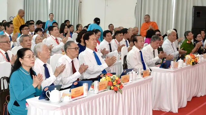 Nguyên Thủ tướng Chính phủ Nguyễn Tấn Dũng cùng các đại biểu dự đại hội. (Ảnh: SGGP)Ngày 12/8, Đảng bộ phường Xuân Hòa (TPHCM) tổ chức Đại hội đại biểu Đảng bộ phường lần thứ I, nhiệm kỳ 2025-2030.