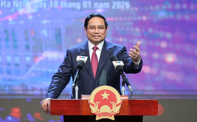 Thủ tướng Phạm Minh Chính dự Hội nghị tổng kết công tác năm 2025 và triển khai nhiệm vụ năm 2026 của Đài Truyền hình Việt Nam - Ảnh: VGP/Nhật Bắc