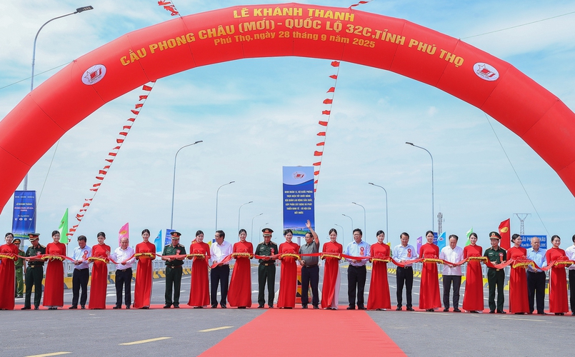 Sáng 28/9, tại xã Phùng Nguyên, tỉnh Phú Thọ, Thủ tướng Phạm Minh Chính dự lễ khánh thành dự án đầu tư xây dựng cầu Phong Châu mới trên Quốc lộ 32C, tỉnh Phú Thọ theo lệnh xây dựng công trình khẩn cấp.