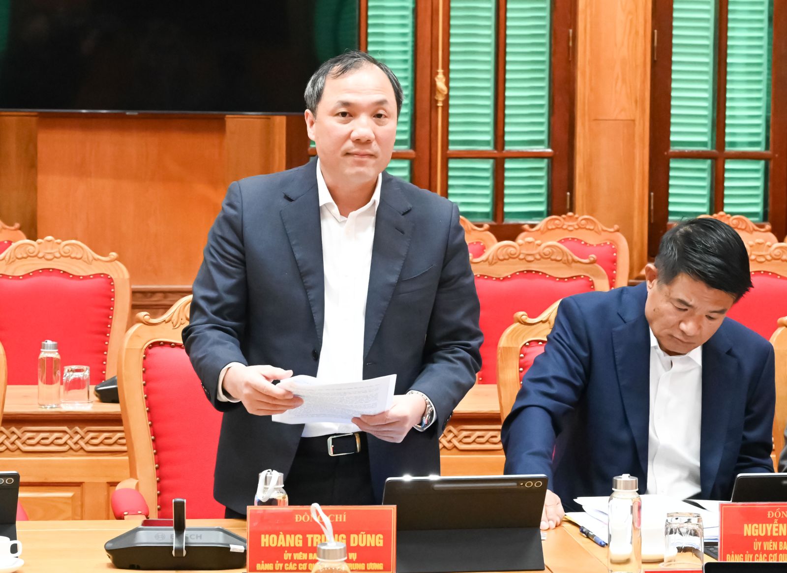 Đồng chí Hoàng Trung Dũng, Ủy viên Trung ương Đảng, Tổng Biên tập Tạp chí Cộng sản, Ủy viên Ban Thường vụ Đảng ủy các cơ quan Đảng Trung ương phát biểu tại Hội nghị.