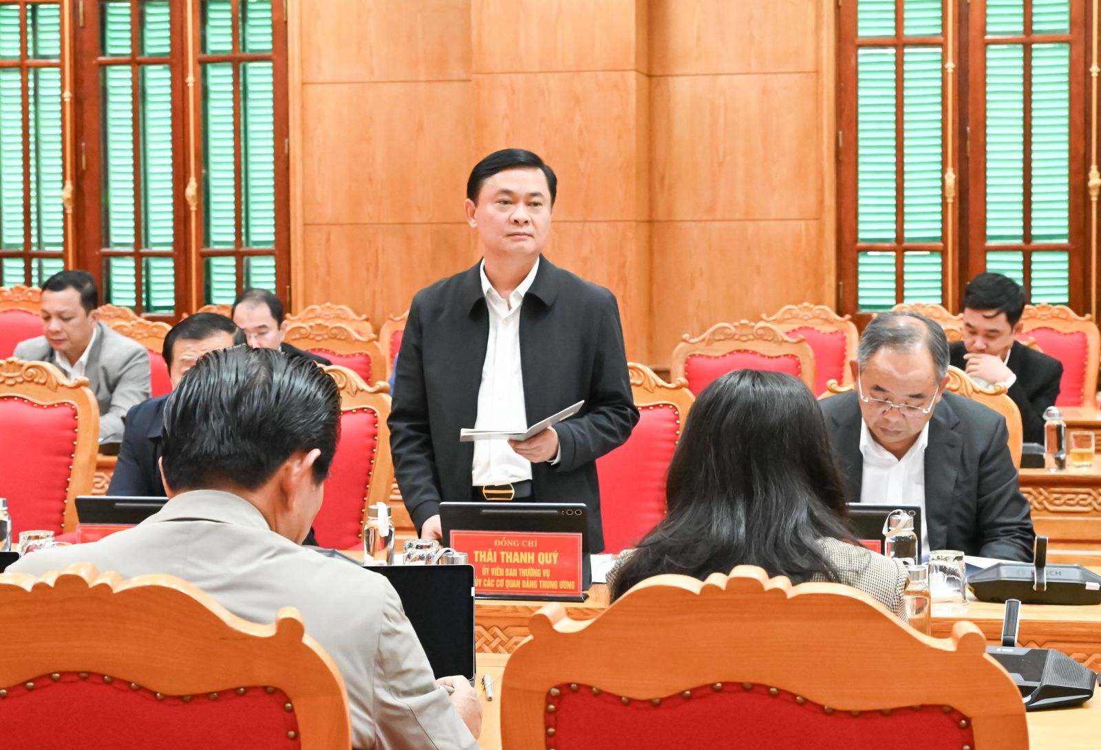 Đồng chí Thái Thanh Quý, Ủy viên Trung ương Đảng, Phó Trưởng ban Chính sách, chiến lược Trung ương, Ủy viên Ban Thường vụ Đảng ủy các cơ quan Đảng Trung ương phát biểu tại Hội nghị.