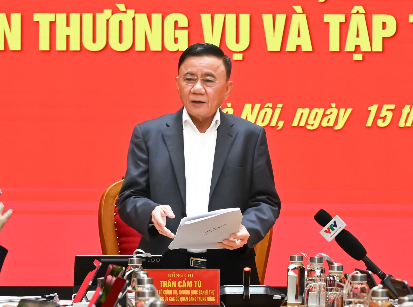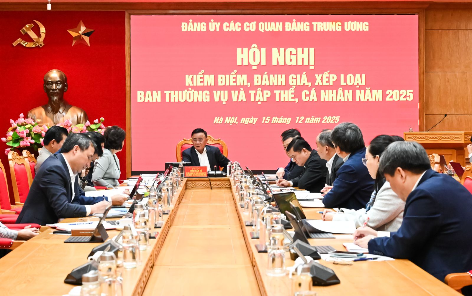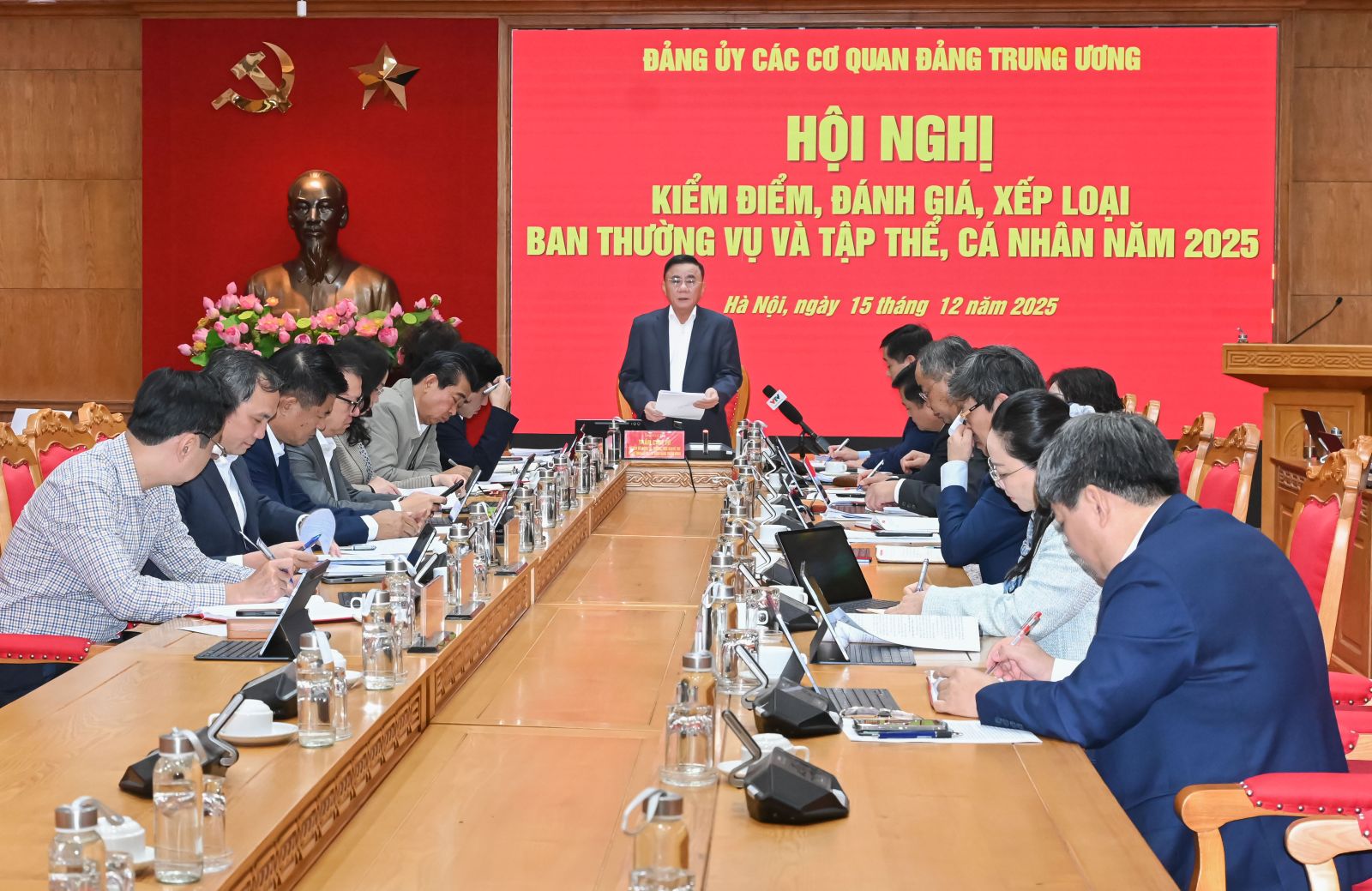 (ĐCSVN) - Sáng 15/12, tại Hà Nội, Đảng ủy các cơ quan Đảng Trung ương tổ chức Hội nghị kiểm điểm, đánh giá, xếp loại Ban Thường vụ và tập thể, cá nhân năm 2025. Đồng chí Trần Cẩm Tú, Ủy viên Bộ Chính trị, Thường trực Ban Bí thư, Bí thư Đảng ủy các cơ quan Đảng Trung ương chủ trì Hội nghị.