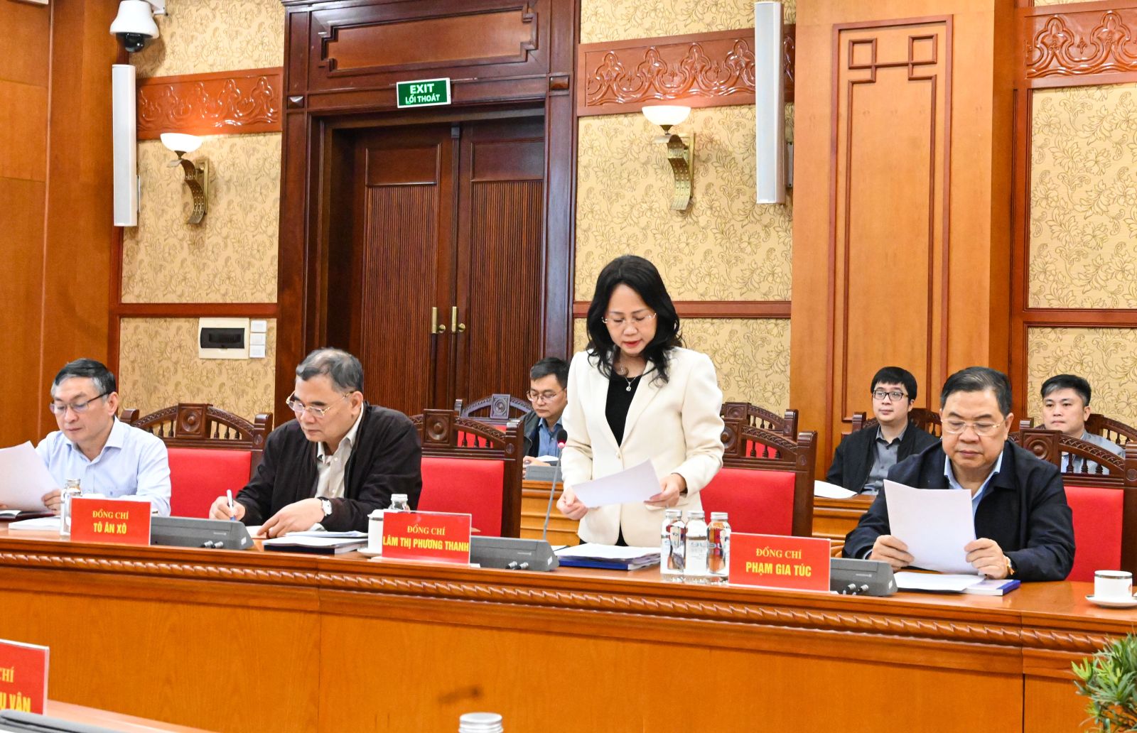 Ảnh: Đồng chí Trần Cẩm Tú chủ trì họp Thường trực Tiểu ban Tổ chức phục vụ Đại hội XIV của Đảng