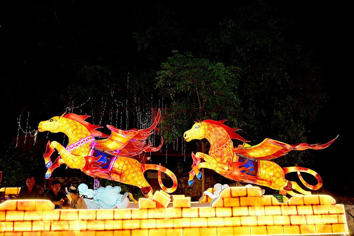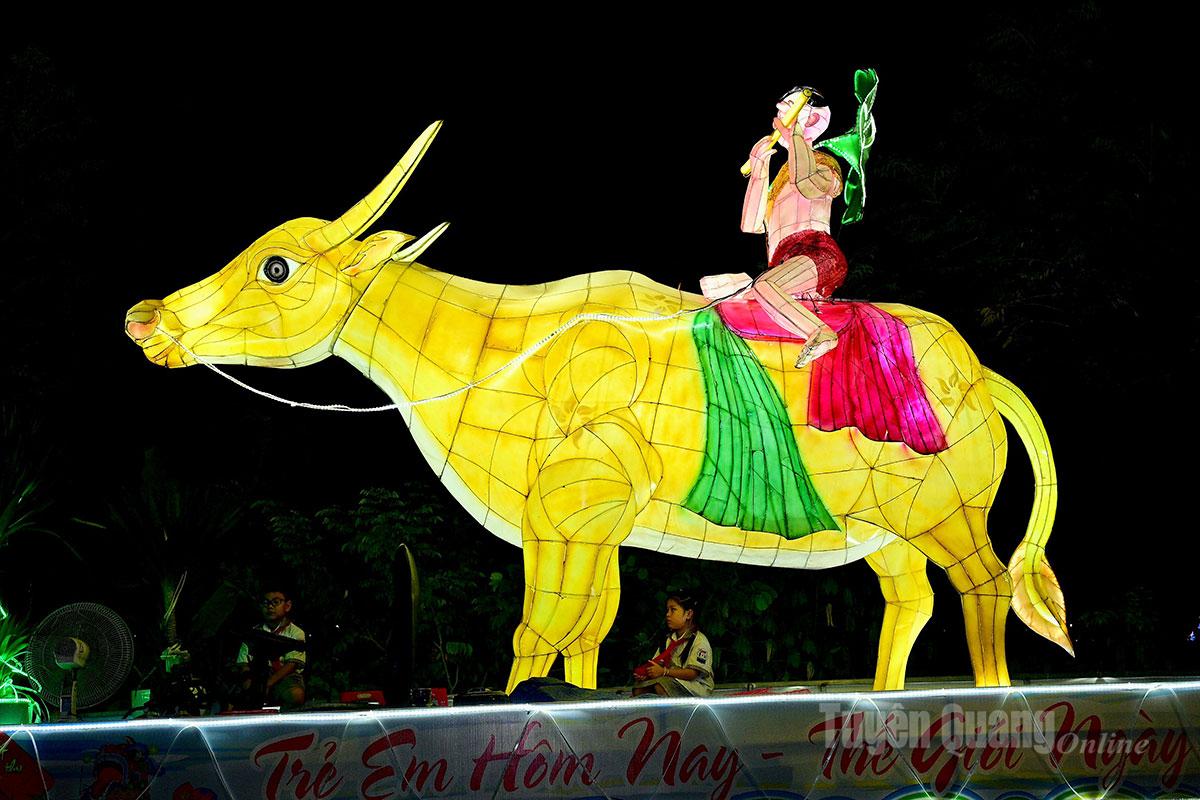 Mô hình đèn Trung thu phường Nông Tiến được các nghệ nhân thiết kế uyển chuyển. Ảnh: Quang Hòa
