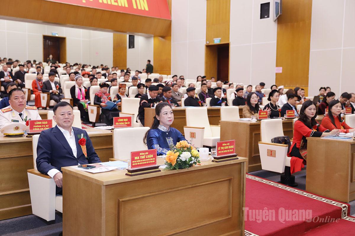 Dự hội nghị có các đồng chí: Lê Thị Kim Dung, Phó Bí thư Thường trực Tỉnh ủy; Vương Ngọc Hà, Ủy viên Ban Thường vụ Tỉnh ủy, Phó Chủ tịch UBND tỉnh; Lê Thị Thanh Trà, Ủy viên Ban Chấp hành Đảng bộ tỉnh, Phó Chủ tịch HĐND tỉnh; lãnh đạo Vụ Tuyên truyền công tác dân tộc, tôn giáo (Bộ Dân tộc và Tôn giáo); lãnh đạo các sở, ban, ngành của tỉnh cùng 300 điển hình tiên tiến đại diện cho 1,3 triệu đồng bào các DTTS tỉnh Tuyên Quang.