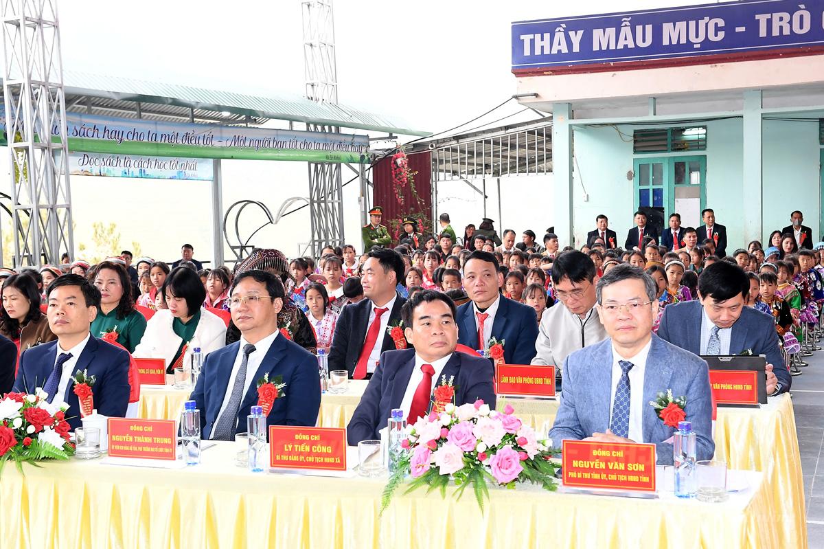 Đồng chí Chủ tịch HĐND tỉnh Nguyễn Văn Sơn cùng với giáo viên, học sinh trên địa bàn xã Lao Chải tại lễ khởi công.