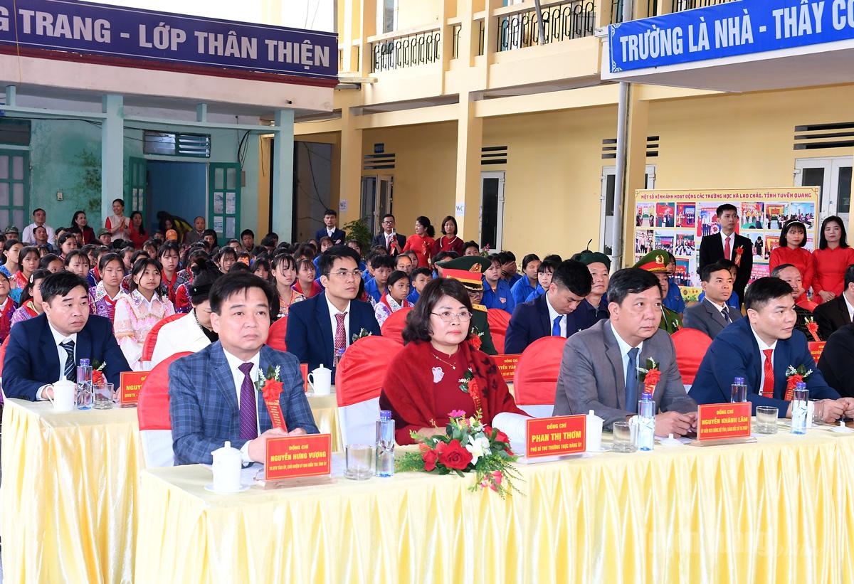 Học sinh trường Phổ thông Dân tộc bán trú TH và THCS Lao Chải tại lễ khởi công.