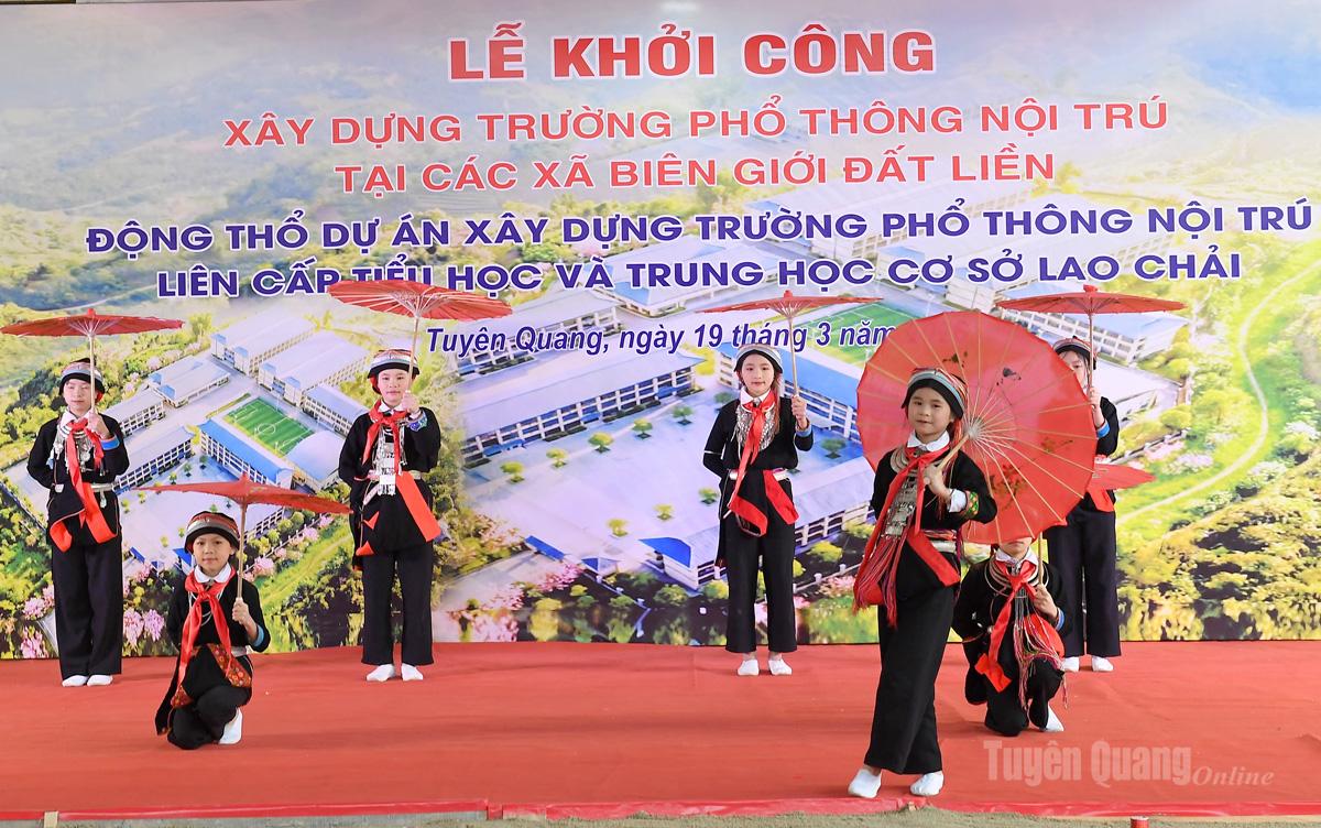 Trước đó, thực hiện chủ trương đầu tư xây dựng trường học cho các xã biên giới đất liền tại Thông báo Kết luận số 81-TB/TW ngày 18/7/2025 của Bộ Chính trị; Nghị quyết số 298/NQ_CP ngày 26/9/2025 của Chính phủ về việc ban hành Kế hoạch hành động thực hiện Thông báo Kết luận số 81 của Bộ Chính trị và các văn bản chỉ đạo, hướng dẫn của Bộ, ngành Trung ương, tỉnh Tuyên Quang đã khẩn trương triển khai thực hiện. Ở giai đoạn 1, tỉnh Tuyên Quang đã được đầu tư xây dựng 6 trường tại 6 xã biên giới, gồm: Pà Vầy Sủ, Xín Mần, Thanh Thủy, Minh Tân, Phố Bảng, Sơn Vĩ, các dự án được khởi công từ năm 2025 và đang trong quá trình xây dựng với cam kết hoàn thành trước ngày 30/8/2026 để đón học sinh vào học tập từ năm học mới 2026-2027.