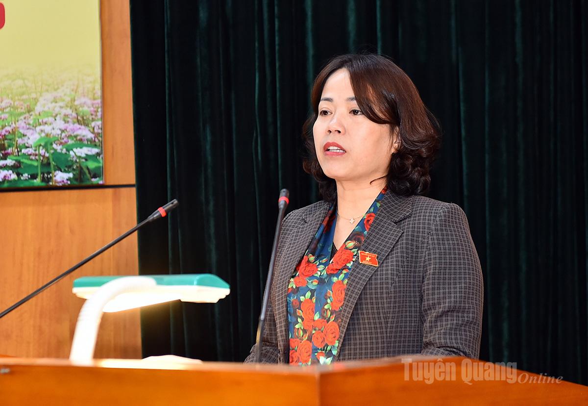 Đồng chí Lý Thị Lan, Trưởng Đoàn ĐBQH tỉnh phát biểu kết luận hội nghị.