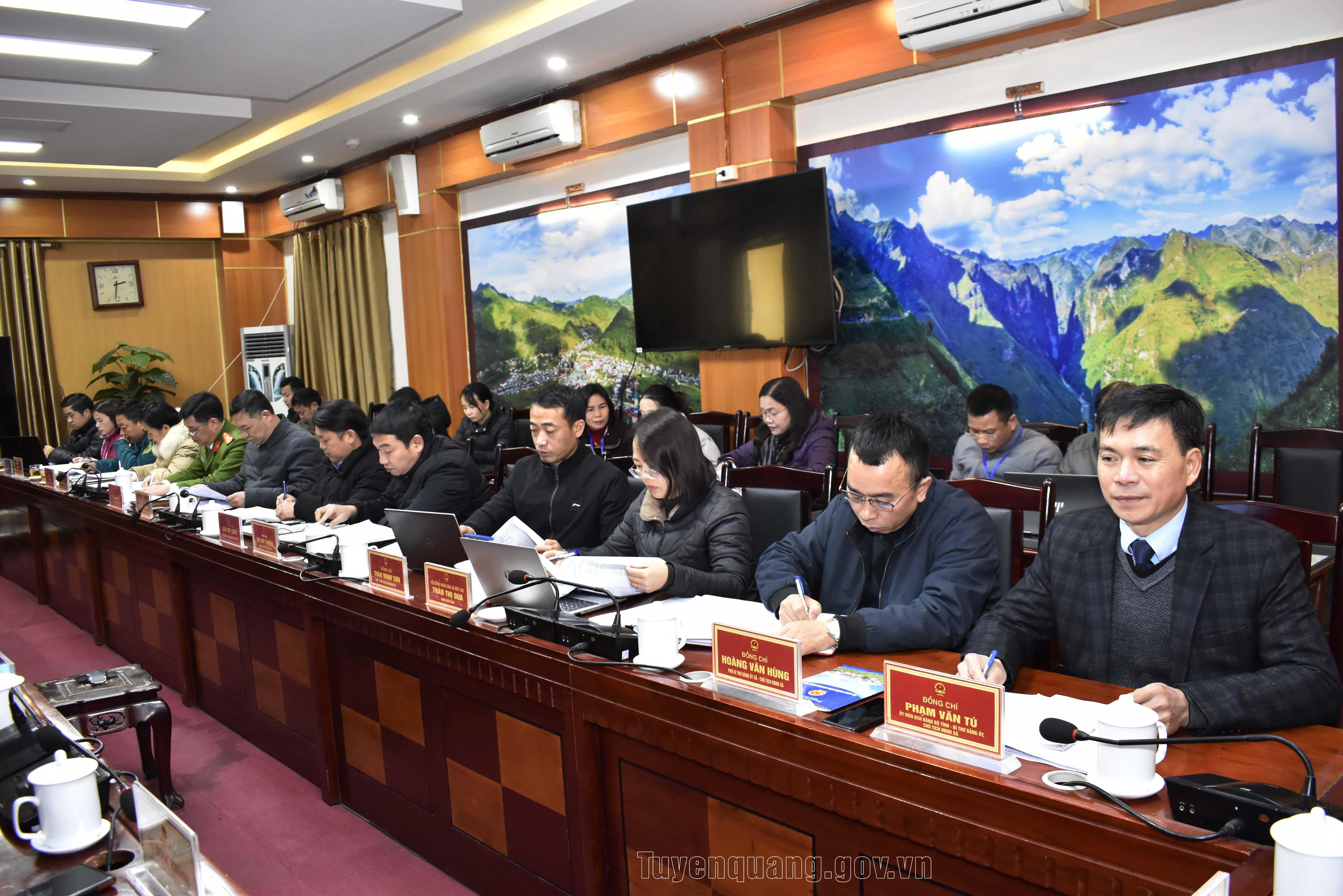 Lãnh đạo Đảng ủy, HĐND, UBND, Ủy ban MTTQ và các tổ chức đoàn thể xã Mèo Vạc dự buổi làm việc.