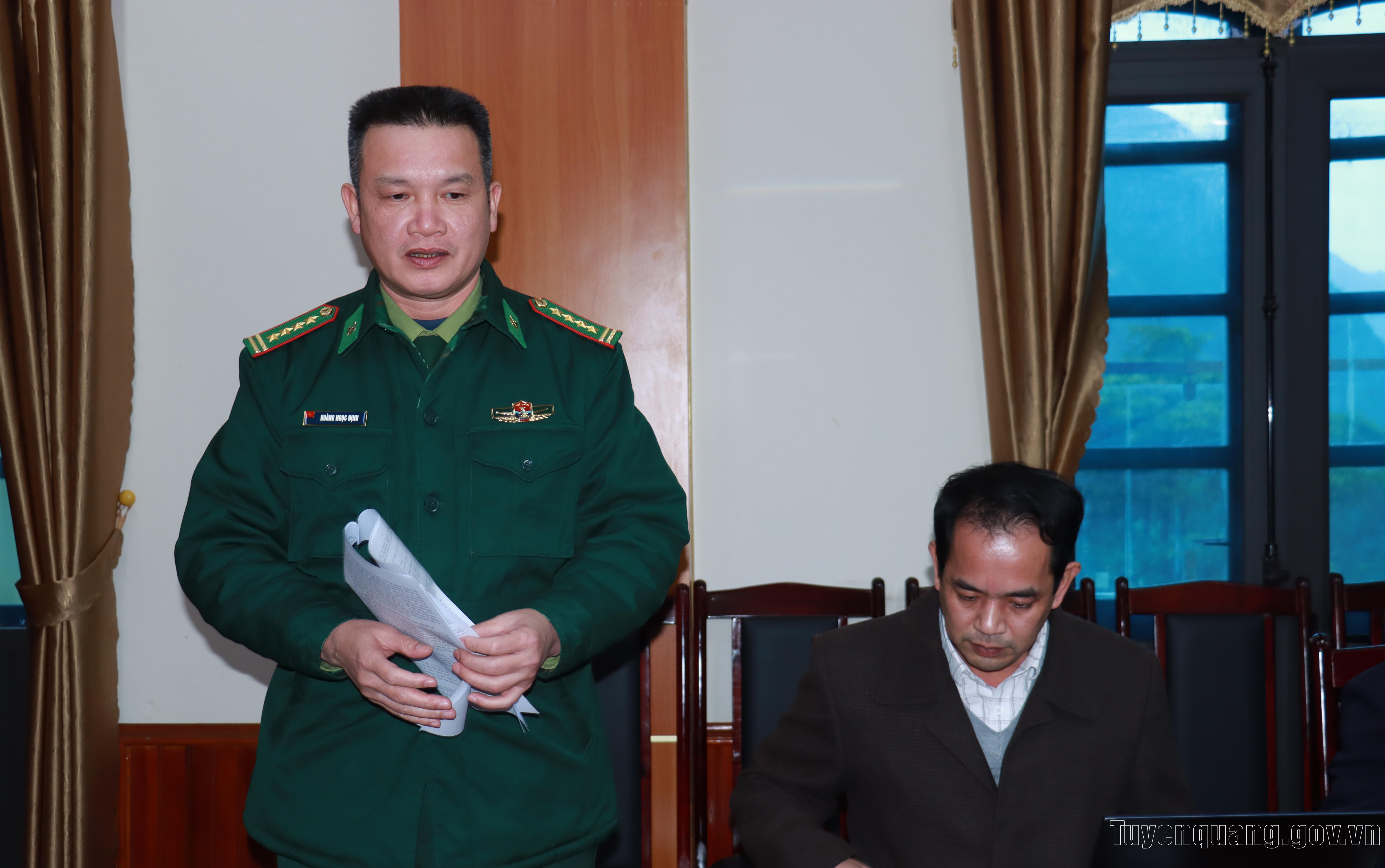 Đồng chí Hoàng Ngọc Định, Ủy viên BCH Đảng bộ tỉnh, Phó Chỉ huy trưởng Bộ Chỉ huy Quân sự tỉnh kiêm Chỉ huy trưởng Bộ đội Biên phòng tỉnh, Ủy viên Ủy ban bầu cử tỉnh phát biểu tại buổi làm việc.