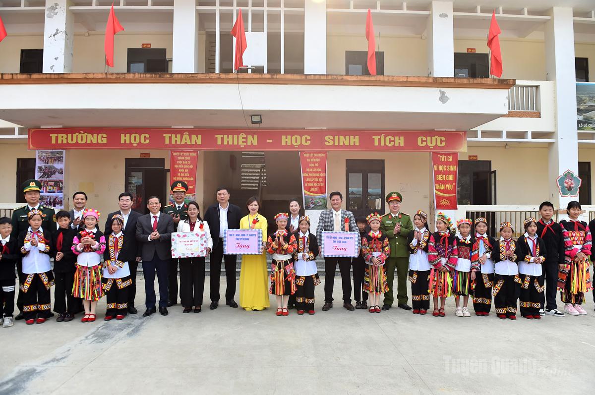 Đồng chí Phó Bí thư Thường trực Tỉnh ủy Lê Thị Kim Dung tặng quà cho trường Tiểu học và THCS xã Lũng Cú.