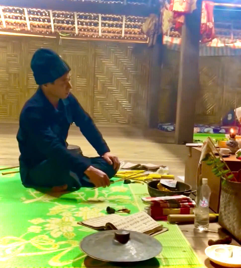 Lễ cúng ngày cuối năm của gia đình người Dao tại thôn Xà Phìn, tỉnh Tuyên Quang cầu mong bình an, no ấm.